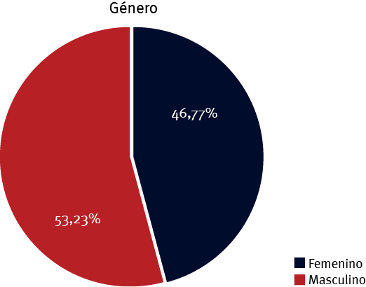 De acuerdo con los hallazgos 46,8% de la muestra estudiada pertenecen al sexo femenino y 53,2% al sexo masculino.