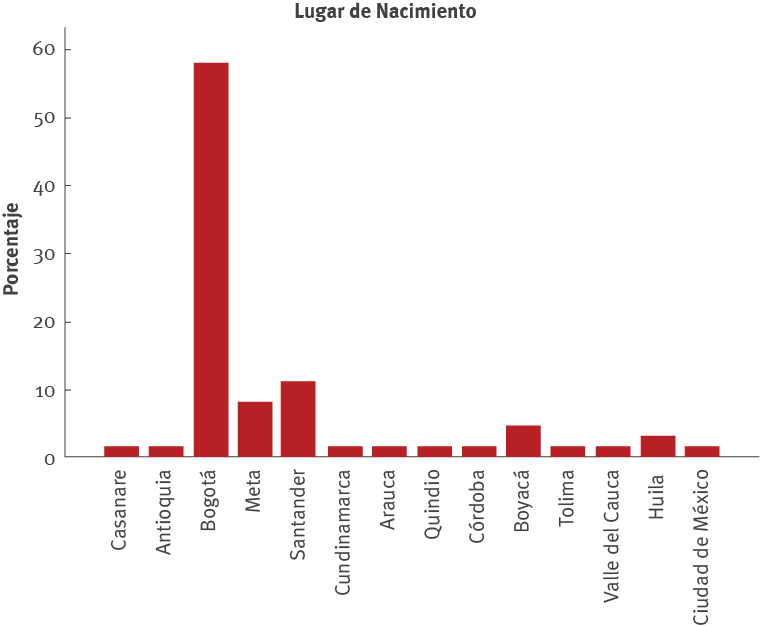 El 58,1% de los estudiantes que participan en el estudio son de Bogotá lo que indica una mayor concentración en esta dependencia, 11,3% del departamento de Santander, 8,1% provenientes del departamento de Meta, del departamento de Boyacá se tiene un total de 4,8%, del departamento de Huila se encontró un 3,2%. La concentración más baja se observa en los departamentos de Cundinamarca, Casanare, Antioquia, Quindío, Arauca, Córdoba, Tolima, Valle del Cauca y Ciudad de México con 1,6% respectivamente.